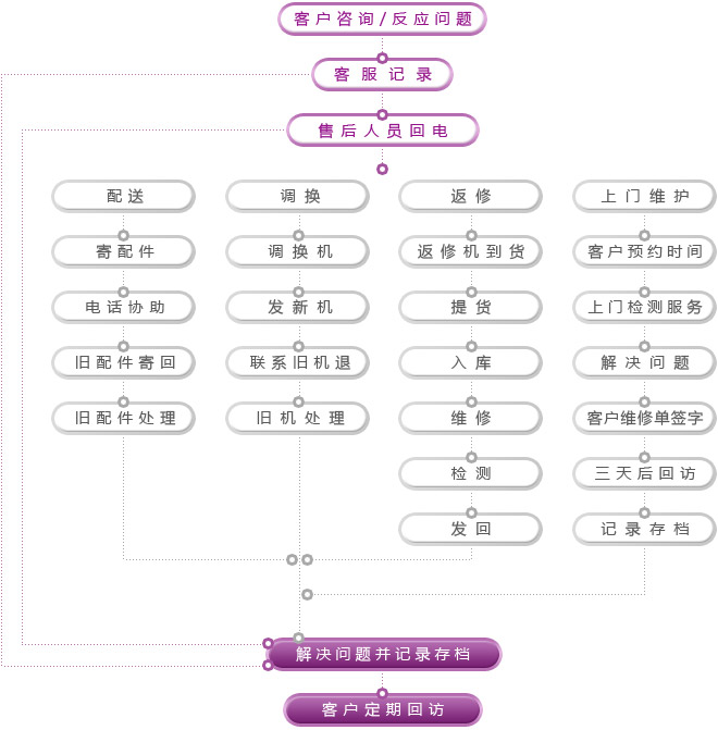 In order to quickly deal with customer after-sales problems, maintain the company's reputation, promote quality improvement and after-sales service level, but also better for the company's development, enhance the company's social competitiveness and improve the staff's work efficiency, the company's after-sales service process is specially formulated.