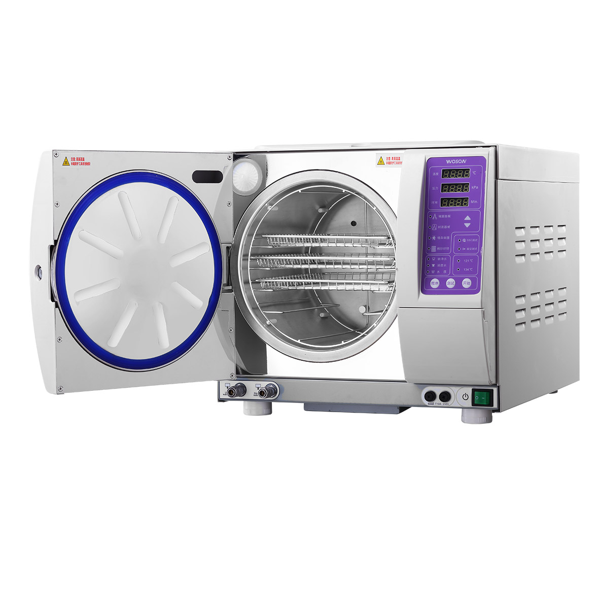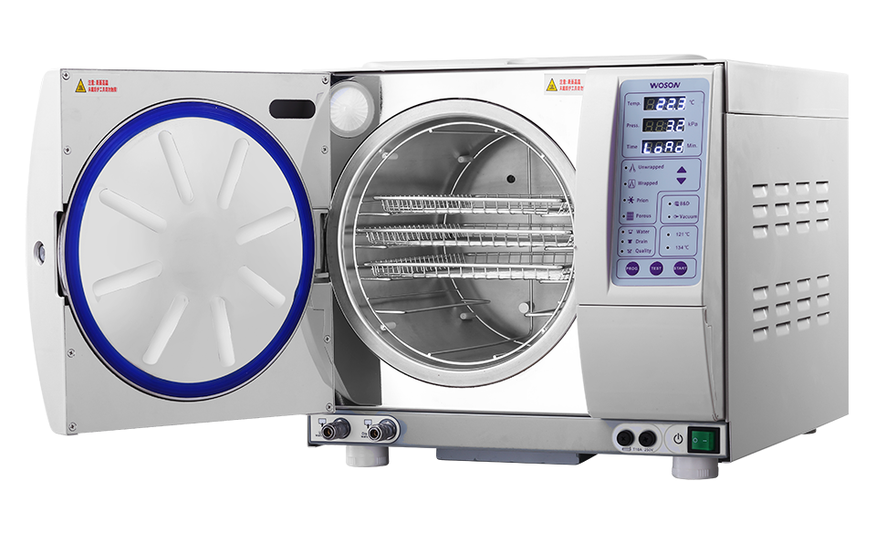 It is a class B pre-vacuum recommended for medical-odontological clinics, veterinary, podiatry, beauty salons, hairdressers, tattoo studios and the like. Its vertical reading front panel selects and activates preprogrammed functions, identifies temperature, pressure, time and sequence of the phases of the complete cycle, shows the water level in the distilled and used water tanks.