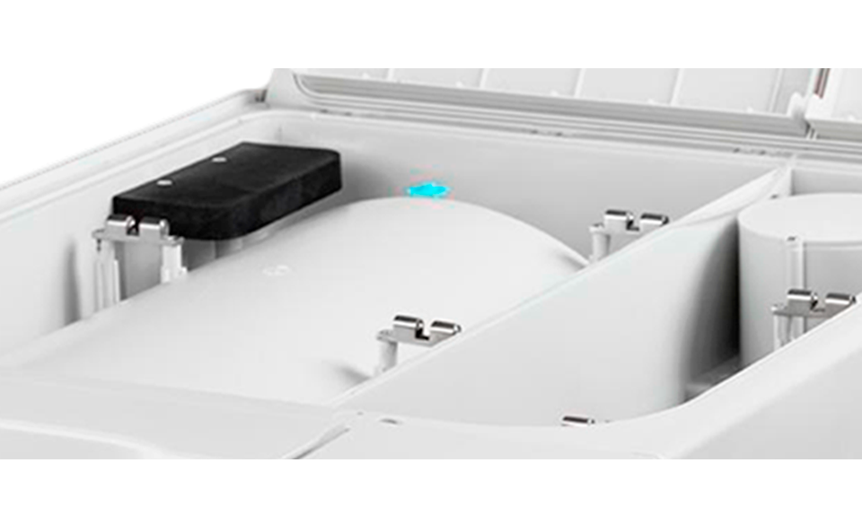 Compartment for optional mini printer, which is intended to record data, even aborted, on thermal tape, every 30 seconds, until the end of the cycle. It can be operated simultaneously with the pendrive.