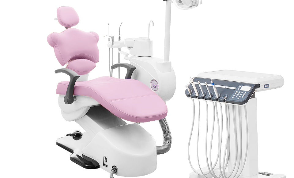 Different and unique! Designed and developed for pediatric dentists. It stands out for the innovative design of the backrest and head support, support for multimedia integrated to the reflector and versatility of the Cart and Water Unit equipment.